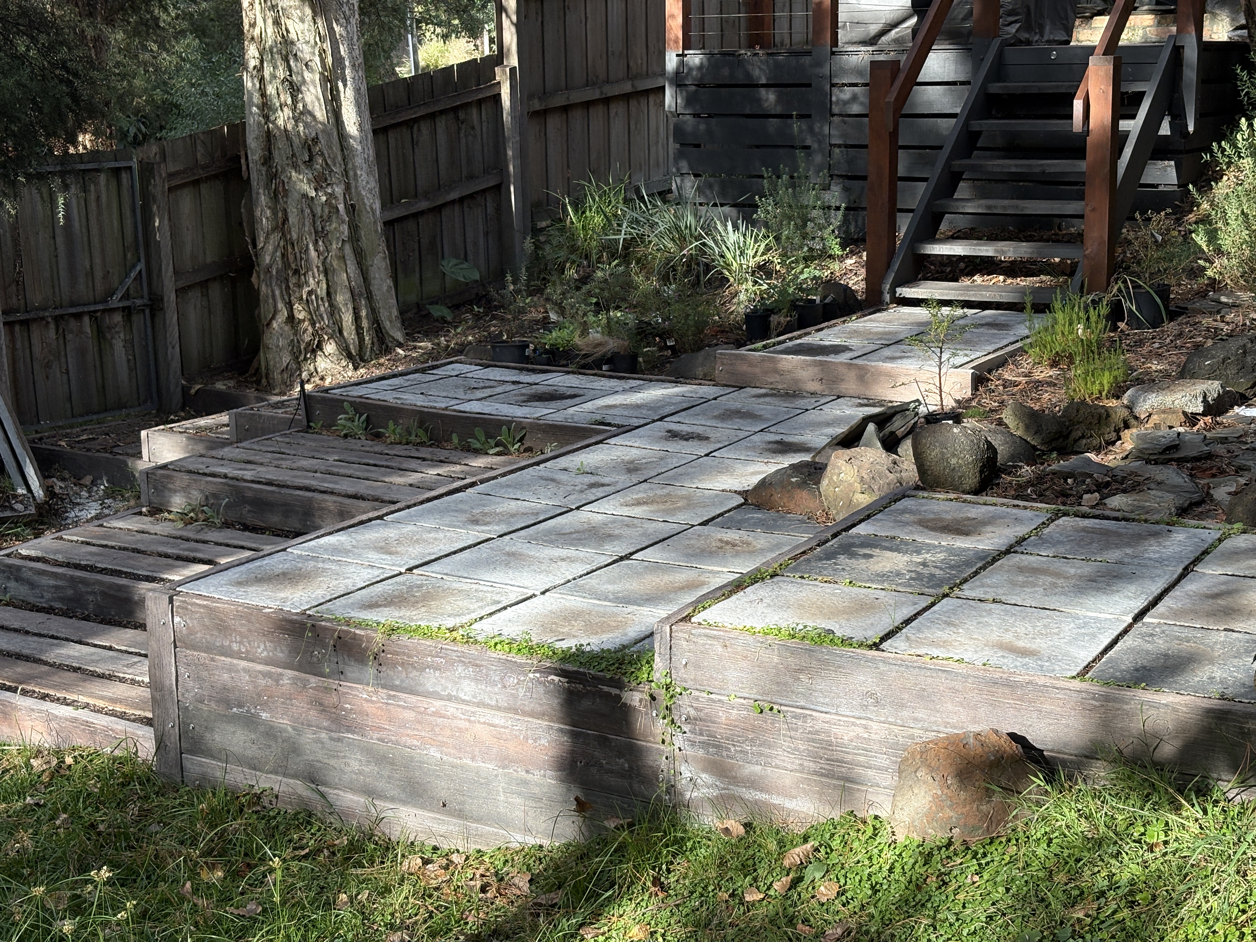A woodgrain paver, comes in browns and greys. 450 x 450
